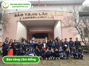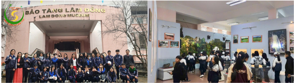 09h30: Quý thầy cô cùng các bạn học sinh tham quan Bảo Tàng Lâm Đồng, thu hút du khách bởi những khu trưng bày sống động và đậm nét lịch sử như các hiện vật khảo cổ, các nghề truyền thống, lễ hội và đời sống văn hóa tinh thần… Ngoài ra, nơi đây còn có 2 mô hình nhà sàn của dân tộc Mạ và Cơho được phục dựng nguyên gốc và bài trí theo không gian truyền thống xưa.