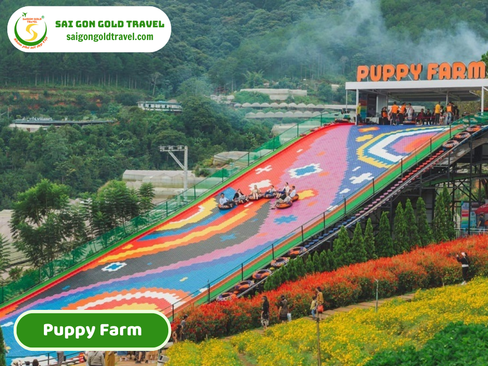 Dạo quanh đồi hoa siêu to khổng lồ rộng 15 km2, chỉ cần thả dáng nhẹ là có ảnh đẹp lung linh. Bên cạnh đó Puppy Farm còn trang bị hai đường trượt phao khô và trượt cỏ cầu vồng cho Các bạn tha hồ vui chơi, xả stress.