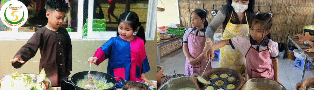 13h00: Tham gia trải nghiệm đổ bánh xèo, bánh khọt. Hoạt động đổ bánh xèo, bánh khọt, bánh kẹp tại Ðất Thép Farm là trải nghiệm thú vị giúp quý khách tìm hiểu văn hóa ẩm thực Nam Bộ độc đáo, rèn luyện kỹ năng làm việc nhóm, giao tiếp và hợp tác. Gắn kết tình đồng đội qua hoạt động vui chơi bổ ích. Quý khách được hướng dẫn cách làm bánh, tự tay đổ bánh và thưởng thức thành phẩm thơm ngon do chính tay mình làm.