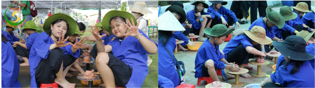 Bé sẽ tìm hiểu quy trình và tự tay thực hành làm sản phẩm gốm bằng phương pháp thủ công với bàn xoay và đất sét.