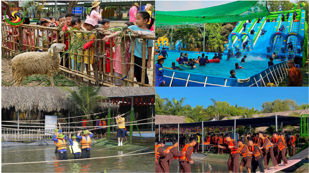 Tắm mưa dân gian, một hoạt động thú vị gợi nhớ về “tuổi thơ dữ dội” của bao thế hệ. Và kết thúc buổi sáng bằng hoạt động tắm hồ bơi – cầu trượt vô cùng sôi động.