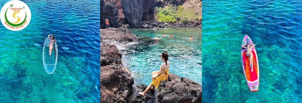 08h00: Đoàn di chuyển ra bến Cano đi Hòn Tranh tham quan Vũng Phật, Cổng Tò Vò, Khe Nước, checkin sup và kayak trong suốt, tắm biển lặng ngắm san hô.