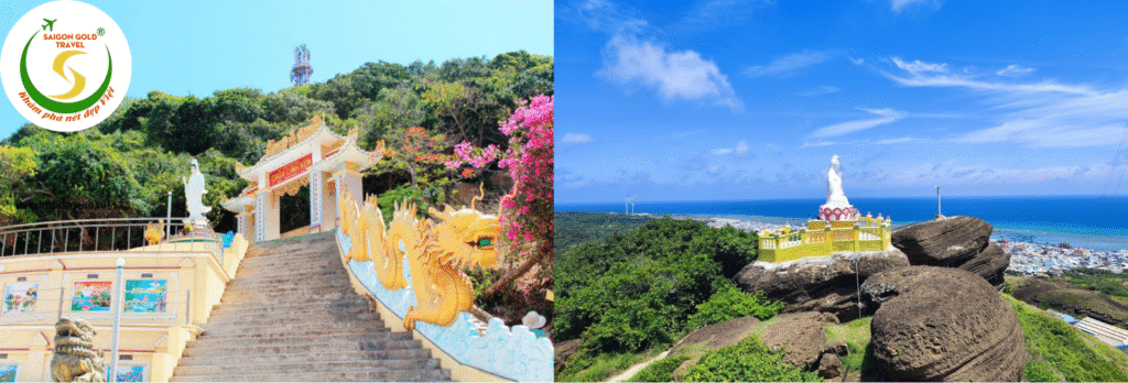 – Chùa Linh Sơn – Núi Cao Cát là một quần thể danh lam thắng cảnh đẹp không thể bỏ qua khi đến đảo Phú Quý, đứng trên đỉnh núi có thể phóng tầm mắt ra xa nhìn toàn bộ khung cảnh thiên nhiên hùng vĩ đảo Phú Quý.