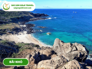 Tham quan Bãi Nhỏ nơi đây còn lưu lại những tàn tích của núi lửa và 2 bên là gành đá dựng đứng sát biển bao quanh 1 bãi cát nhỏ nên khá yên tĩnh để tắm biển.