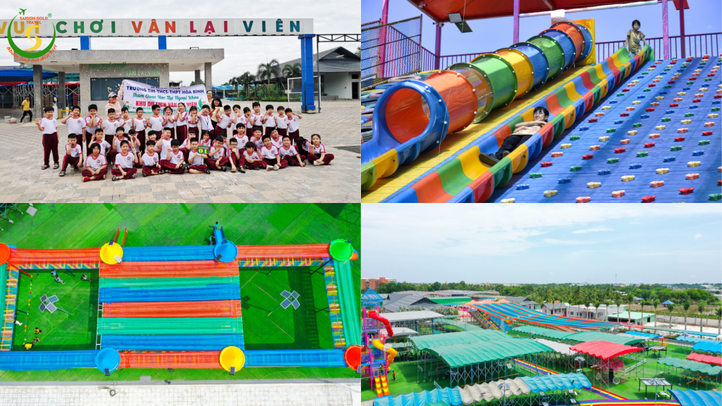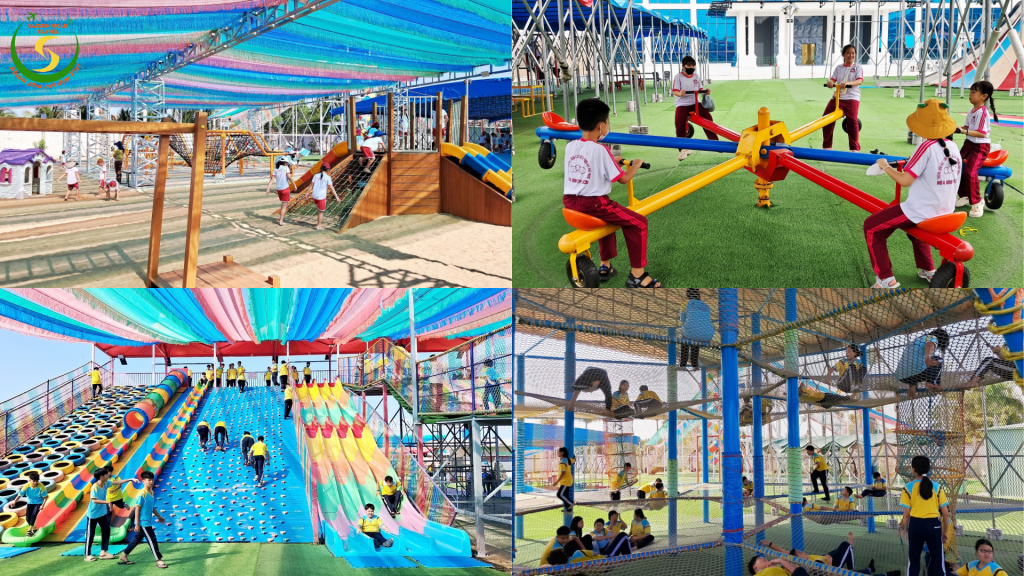 – Khu Tổ Hợp Trò Chơi Trong Nhà & Ngoài Trời: Với hơn 30 trò chơi hấp dẫn như Máng Trượt 7 Sắc Cầu Vòng, xe leo núi, khu vui chơi trên cát,… mỗi trò chơi đều được thiết kế kỹ lưỡng để phù hợp với mọi lứa tuổi, từ trẻ em đến người lớn.