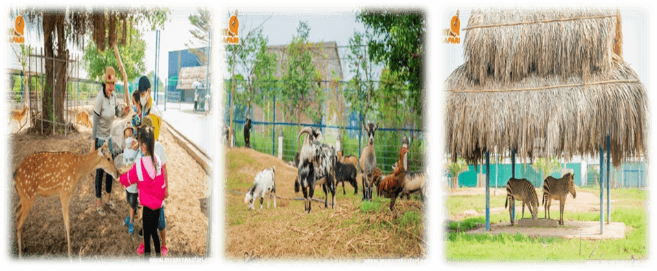 Các bạn sẽ có cơ hội tuyệt vời để gần gũi, vuốt ve, chụp ảnh với các bạn thú và cho các bạn thú ăn như: hươu, nai, dê lùn,….