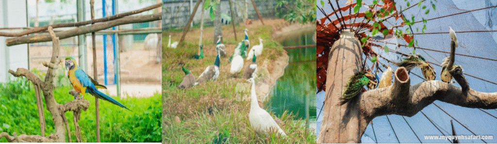 Sau đó, các em sẽ được khám phá khu vườn chim, với đa dạng các chủng loại thuộc họ chim như: