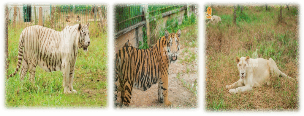 Đến với khu vực đặc biệt hấp dẫn tại Vườn thú: Khu thú ăn thịt. Tại đây, các em sẽ được tận mắt nhìn thấy các bạn thú quý hiếm như: Sư Tử, Cọp Trắng, Cọp Vàng, Báo Đen, Báo Gấm … và loài bò sát dữ tợn nhất – Cá Sấu Nước Ngọt.