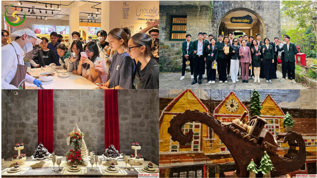 Quý thầy cô và các bạn tiếp tục tham quan Gallery Chocolate – Lâu Đài Socola, nằm trong tòa nhà cổ kính với kiến trúc cổ điển, độc đáo; không gian sáng tạo nghệ thuật từ nguyên liệu chính là chocolate trong Viện Nghiên cứu khoa học Tây Nguyên đã mang đến những trải nghiệm lý thú cho bất cứ ai một lần tới tham quan, bởi sự tinh tế, tỉ mỉ trong từng tác phẩm.
